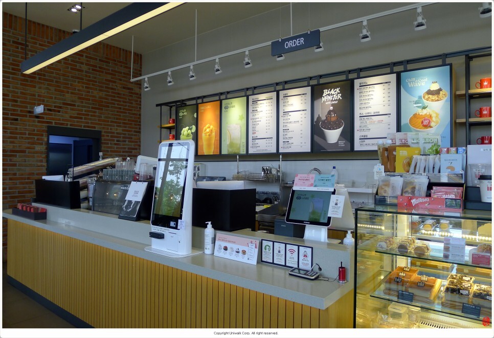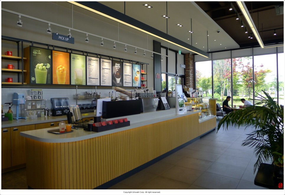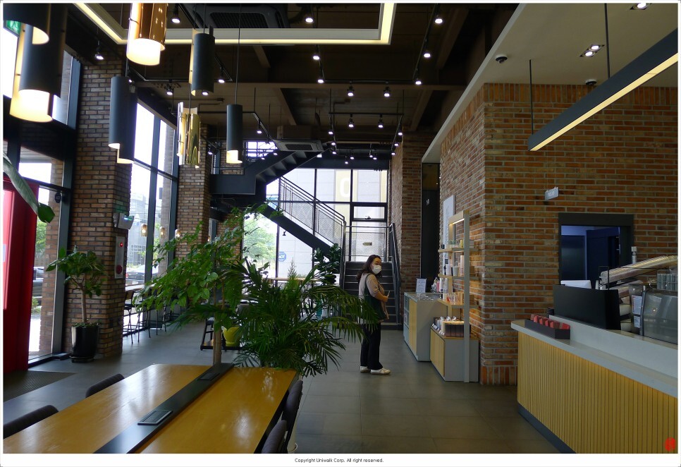 1층에는 주문을 받는 곳과 손님이 앉을 수 있는 공간들로 이루어져 있으며 창이 통창들로 이루어져 있어서 시원시원합니다.
