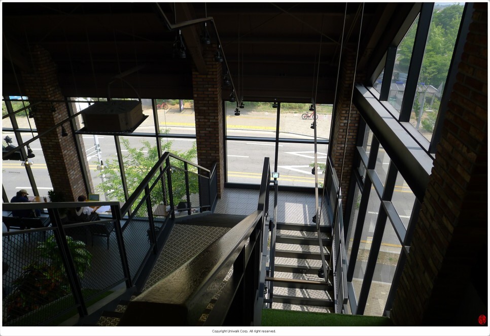 1층 끝 쪽의 철제 계단을 올라가면 2층 실내가 나옵니다. 건물이 높은 곳이 아니라 엘리베이터는 없으며 계단을 이용해야 하는 것이 조금 불편하긴 합니다.